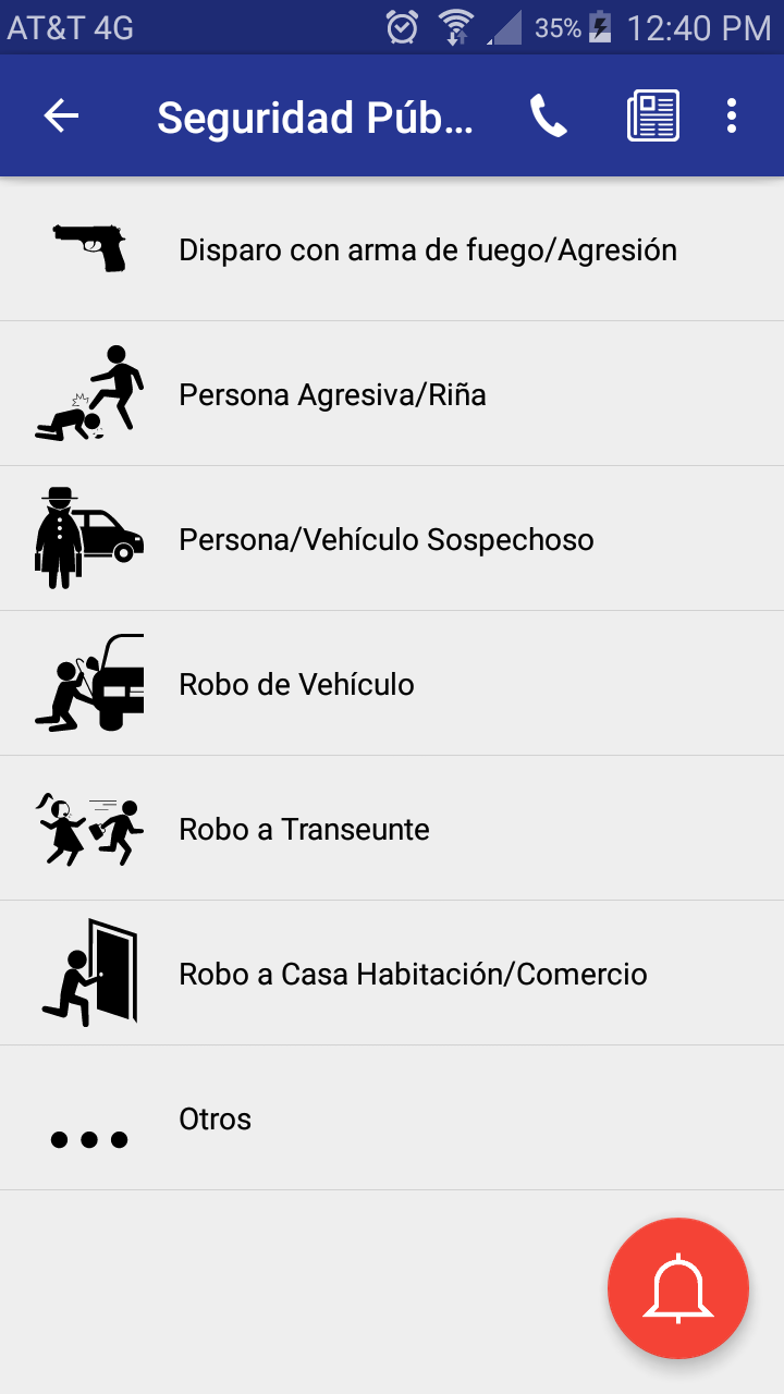 Vecino vigilante, Persona Agresiva, Persona o Vehículo sospechoso, Robo de Vehículo, Robo a transeúnte, robo a casa habitación. Opciones básicas de atención inmediata al ciudadano para poder reportarlas y ser atendidos en tiempo y forma.