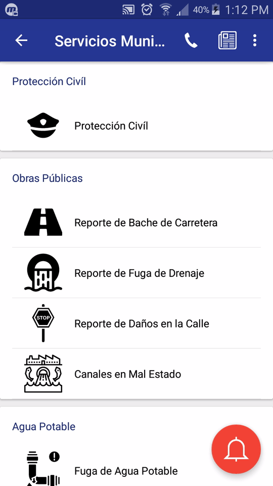 Estas opciones son reportes de faltas de algún servicio básico en alguna localidad(agua) o del deterioro de carreteras o drenaje realizados por los ciudadanos. Estas opciones varían desacuerdo a los servicios municipales mas solicitados por la ciudadanía en cada municipio o pueden servir para obtener la información de los mas solicitados y así conocer cuales son las necesidades con mas solicitudes.